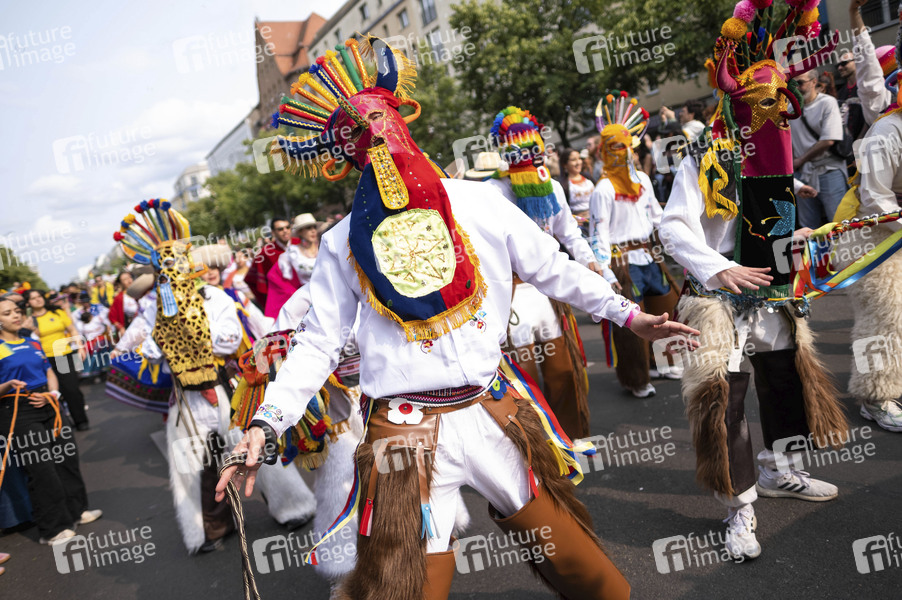 Die Parade zum 27. Karneval der Kulturen zieht durch Berlin-Friedrichshain. Etwa 4000 Tänzer in etwa 70 verschiedenen Gruppen und Umzugswagen nehmen an der Parade teil. Berlin, 08.06.2025