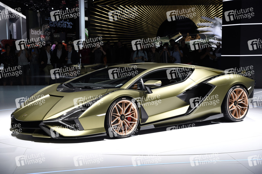 Lamborghini Sian mit V12-Hybrid auf der Internationalen Automobil-Ausstellung 2019 auf dem Messegelände. Frankfurt am Main, 19.09.2019