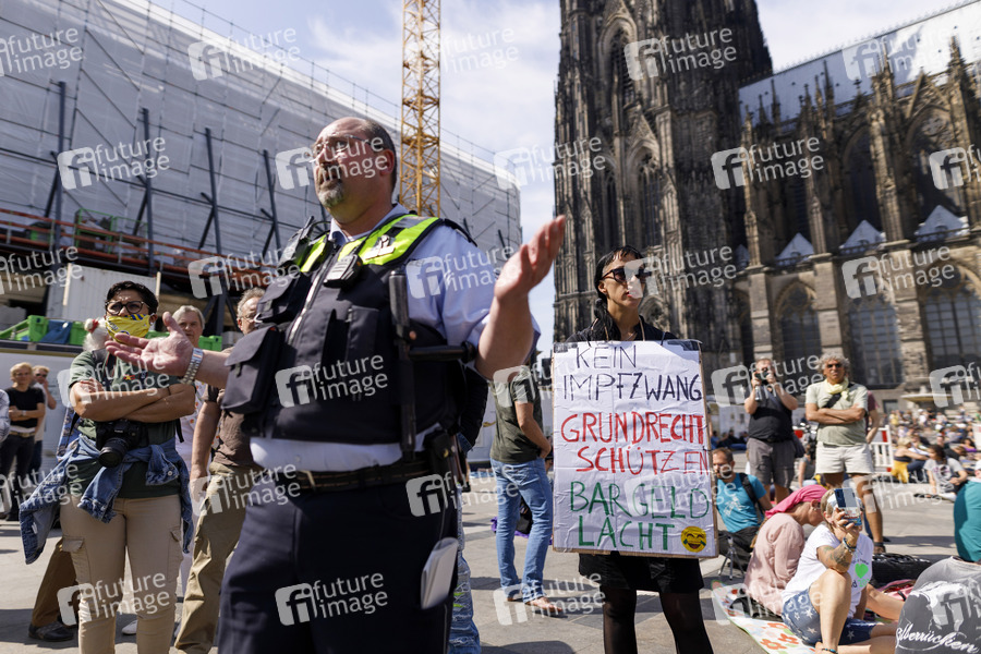 Unangemeldete Demo gegen Corona-Maßnahmen auf dem Roncalliplatz. Köln, 09.05.2020