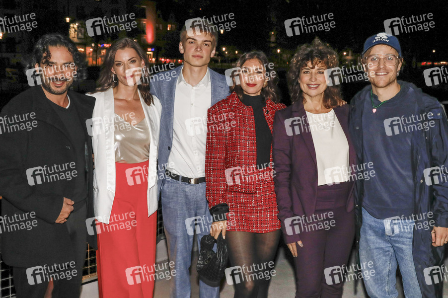 Tayfun Baydar, Antje Hamer, Aurel Klug, Anna Angelina Wolfers, Isabel Varell und Stefan Hartmann beim Pressetermin zur SAT.1 Serie 'Für alle Fälle Familie' auf der MS RheinVision. Köln, 30.09.2024