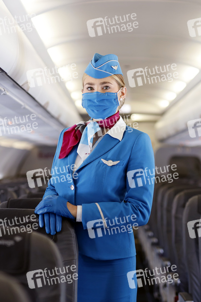 Stewardess von Eurowings bei der Vorstellung des Sicherheitskonzepts am Flughafen Köln Bonn während der Coronakrise 'Sicher in Corona Zeiten'. Köln, 27.05.2020