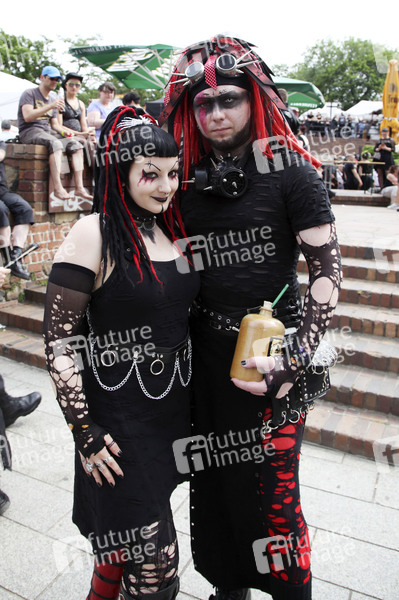 Festivalbesucher beim 28. Wave-Gotik-Treffen auf dem Agra-Gelände. Leipzig, 09.06.2019