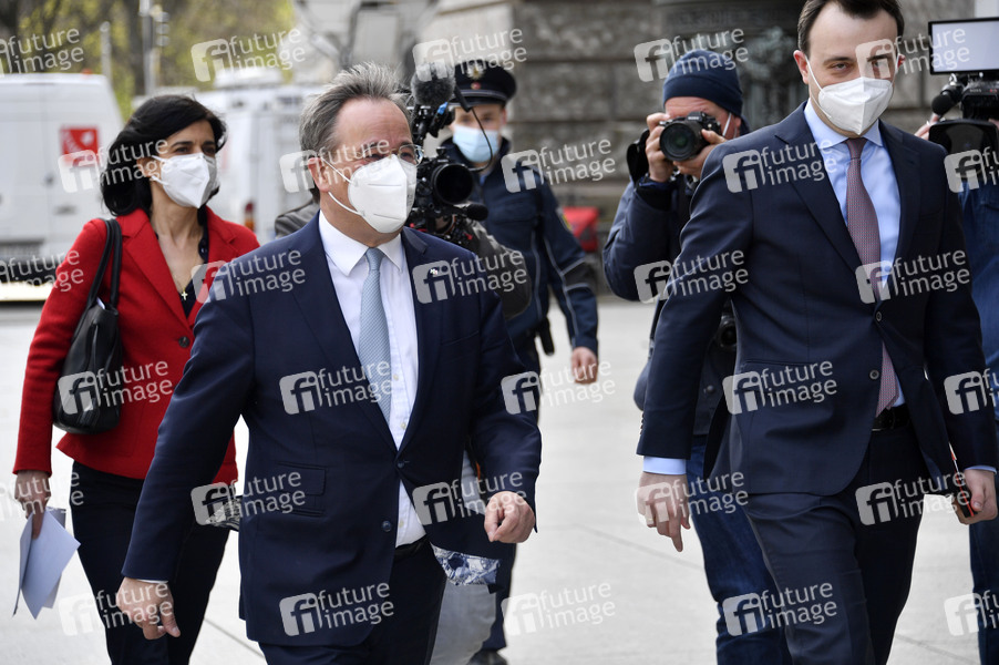 Armin Laschet und Paul Ziemiak bei der Ankunft zur CDU Fraktionssitzung im Reichstagsgebäude. Berlin, 13.04.2021
