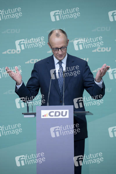 Friedrich Merz bei der Pressekonferenz nach der Sitzung des CDU-Vorstands im Konrad-Adenauer-Haus. Berlin, 24.02.2025