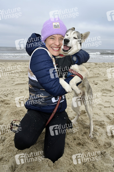 Prominenz, Celebrity, Celebrities, Entertainment, Hunderennen, Schlittenhunderennen, Hunde, Huskys, Husky, Ostsee, Usedom, Charity-Event, Charity, Charity Rennen zu Gunsten der Welthungerhilfe, Sängerin, Moderatorin