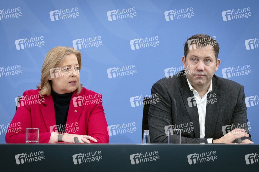 Bärbel Bas und Lars Klingbeil bei einer Pressekonferenz nach der Sitzung des Koalitionsausschusses von Union und SPD im Kanzleramt. Berlin, 11.12.2025