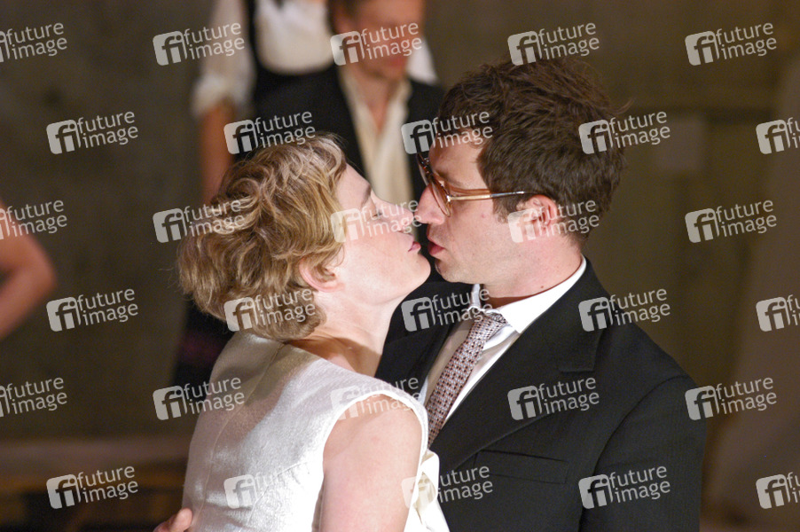 Probe des Theaterstücks 'Platonow' von Anton P. Tschechow in der Berliner Schaubühne am Lehniner Platz. Ensemble: Ulrich Voß, Christina Geiße, Karin Neuhäuser, Michael Rastl, David Ruland, Horst Hiemer, Bernd Grawert, Kay Bartholomäus Schulze, Lea Draeger, Thomas Bading, Felix Römer, Thomas Thieme, Erhard Marggraf, André Szymanski, Yvon Jansen