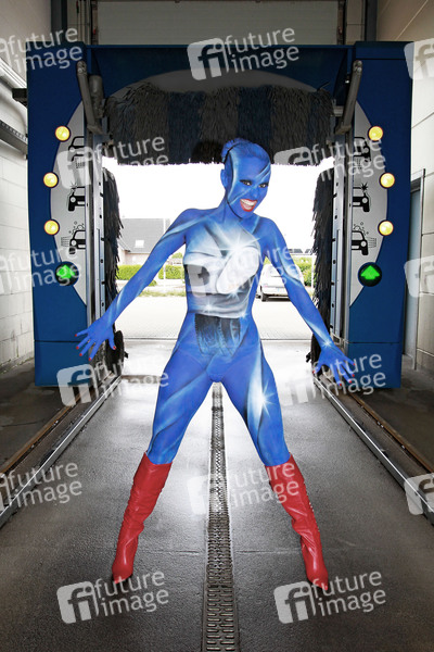 Bodypainting, Erotik, Frau, Mädchen, nackt, drinnen, weiblich, Körperkunst, Kunst, Malerei, Waschanlage, Autowaschanlage, erotic, woman, girl, nude, indoor, female, body art, body painting, car wash