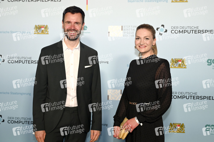 Felix Falk und Judith Gerlach bei der Verleihung des Deutschen Computerspielpreises 2022 in der TonHalle. München, 31.03.2022