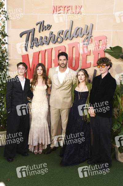 Tom Ellis mit Begleitung bei der Premiere des Netflix Films 'The Thursday Murder Club' im Cineworld Leicester Square. London, 21.08.2025