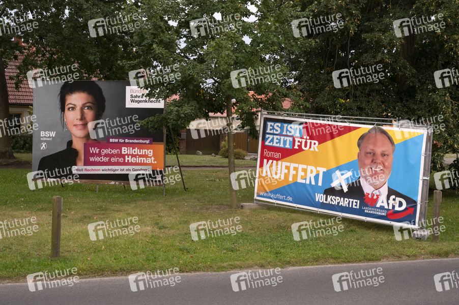 Wahlplakate des BSW und der AfD zur Landtagswahl in Brandenburg. Groß Schönebeck, 15.09.2024