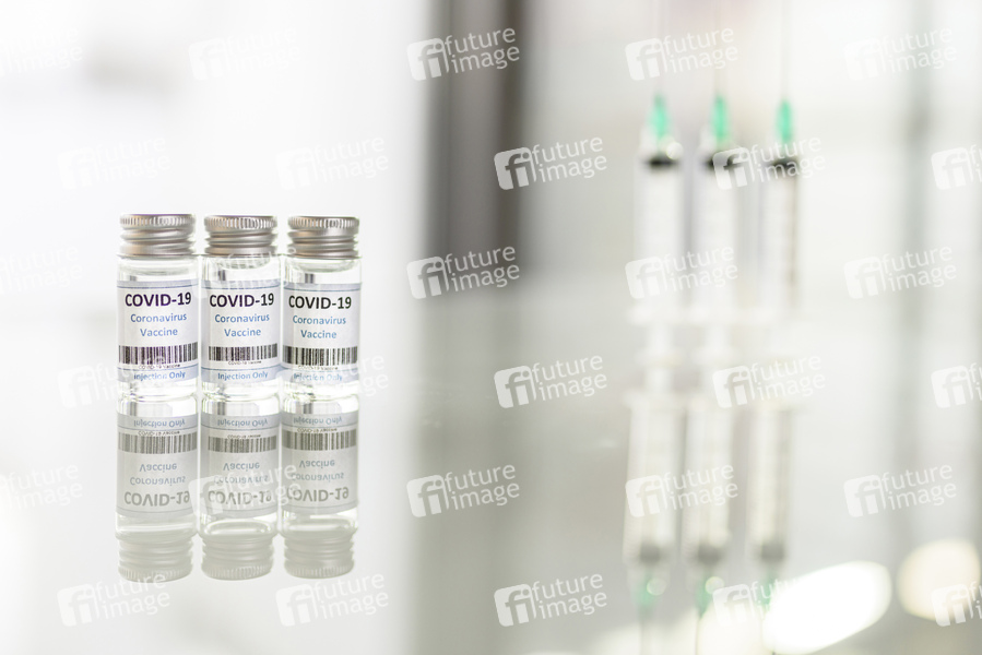 Impfdosen und Impfspritzen stehen auf einem Tisch. (Themenbild, Symbolbild) Nürnberg, 23.01.2021