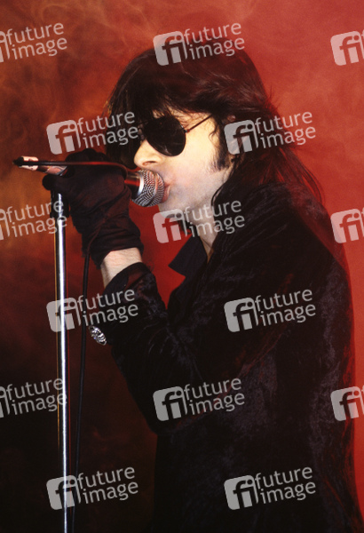 Andrew Eldritch von The Sisters of Mercy live beim Halloween-Konzert im Lyceum. London, 31.10.1984