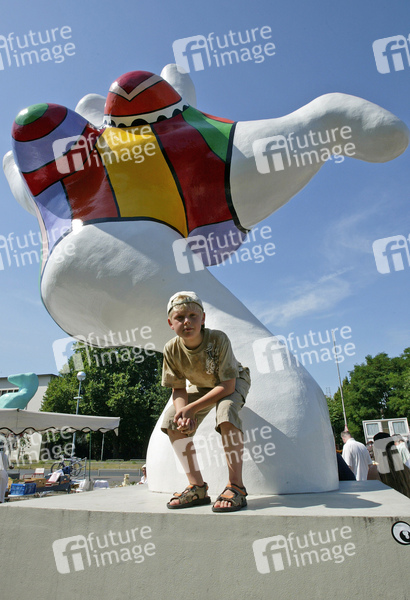 Kunstwerk von Niki de Saint Phalle von 1974, Frauenfiguren mit überdimensionierten Geschlechtsteilen