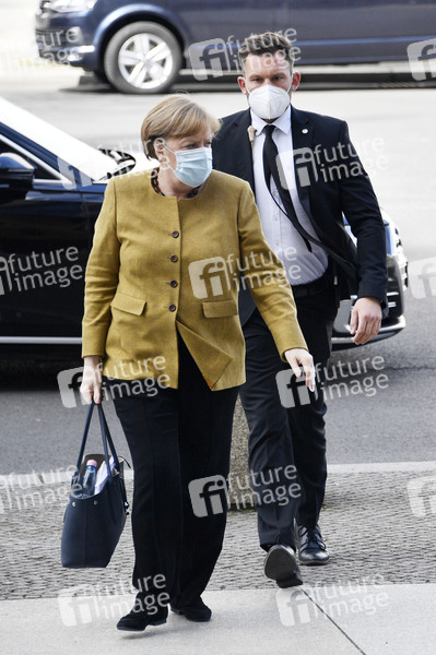 Angela Merkel bei der Ankunft zur CDU Fraktionssitzung im Reichstagsgebäude. Berlin, 13.04.2021