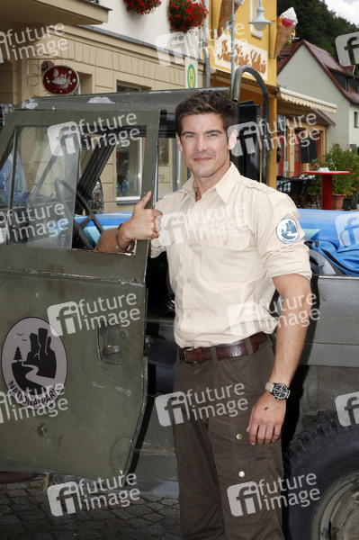 Philipp Danne am Set des ARD-Fernsehfilms 'Der Ranger - Paradies Heimat' auf dem Marktplatz. Stadt Wehlen, 14.08.2019