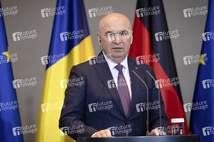 Ilie Bolojan beim Empfang des Ministerpräsidenten von Rumänien zu einem gemeinsamen Gespräch mit dem Bundeskanzler und anschließendem Pressestatement im Bundeskanzleramt. Berlin, 28.01.2026