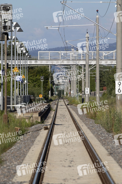 Bahnkörper bei Höhe Kressbronn an der Ausbaustrecke der neu elektrifizierten Südbahn im Teilabschnitt von Friedrichshafen nach Lindau. Lindau, 01.07.2020