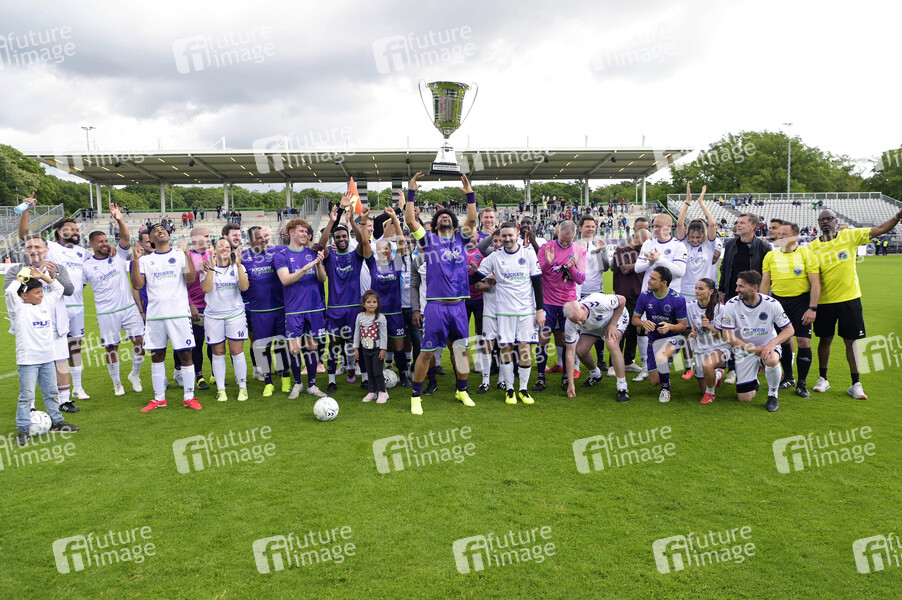 Die Teilnehmer-Teams beim Benefiz-Fußballspiel 'Kicken mit Stars' im Eilenriedestadion. Hannover, 25.05.2025