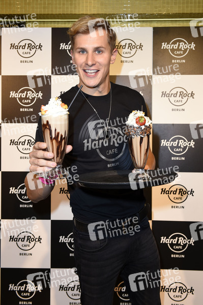 Lukas Sauer kellnert im Rahmen der Pinktober Charity-Aktion zugunsten der Organisation Brustkrebs Deutschland e.V. im Hard Rock Cafe. Berlin, 27.10.2019