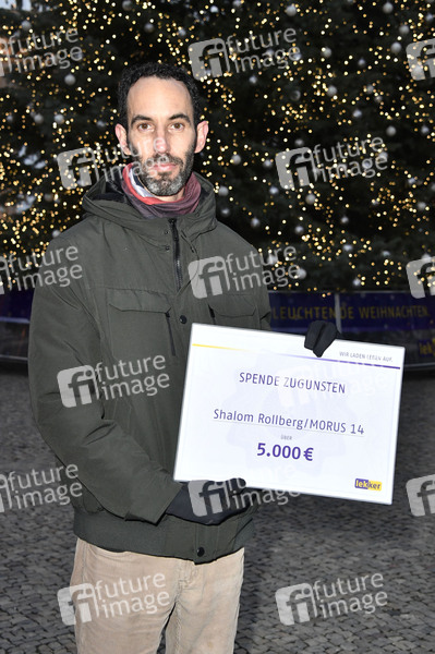 Itay Novik schaltet das Weihnachtslicht am Weihnachtsbaum auf dem Pariser Platz vor dem Brandenburger Tor ein. Berlin, 29.11.2020