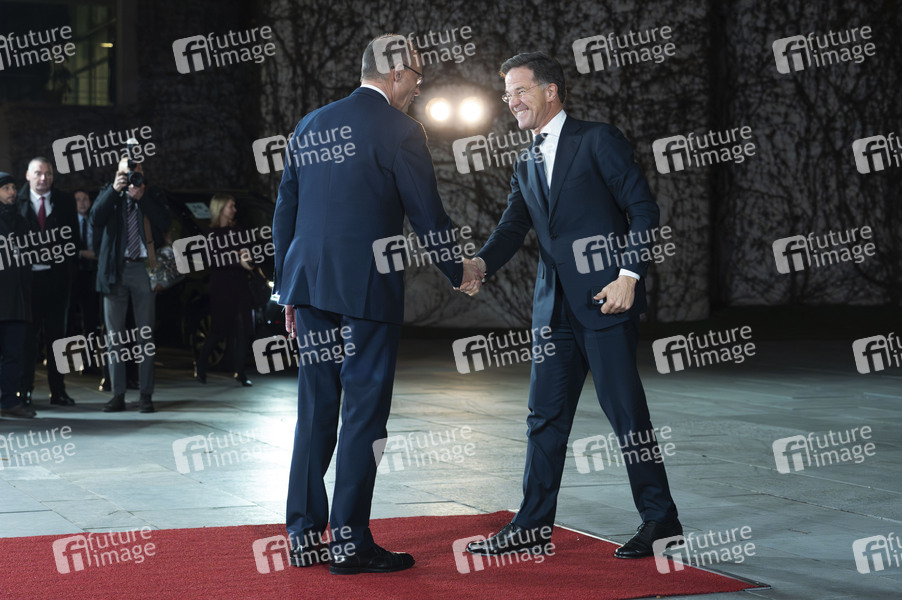 Friedrich Merz und Mark Rutte beim Empfang zum Ukraine-Gipfel im Bundeskanzleramt. Berlin, 15.12.2025