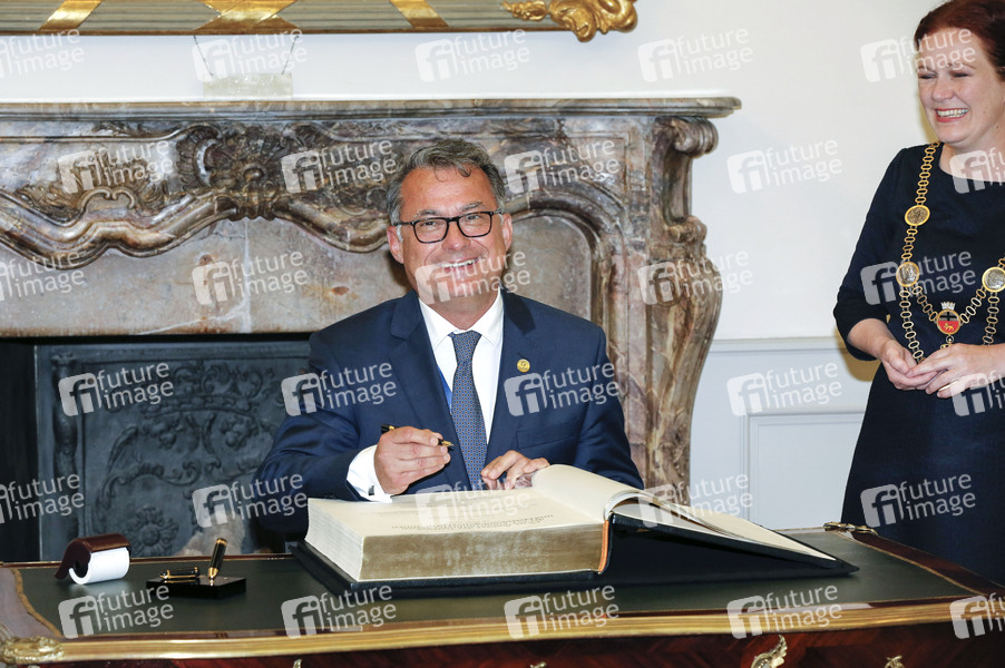 Joachim Nagel und Katja Dörner beim Bildtermin vom Eintrag einiger G7-Finanzminister und Notenbankgouverneure ins Goldene Buch der Stadt Bonn im Alten Rathaus. Bonn, 19.05.2022