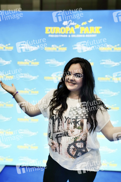 Natalie Röhle in der Unterhaltungsshow 'Immer wieder Sonntags'. Anna-Carina Woitschack und Stefan Mross erfüllten den größten Traum der 18jährigen Natalie Röhle aus Rothenburg in der Oberlausitz mit einem Auftritt in der Sendung 'Immer wieder Sonntags' im Europa-Park. Rust, 12.07.2020