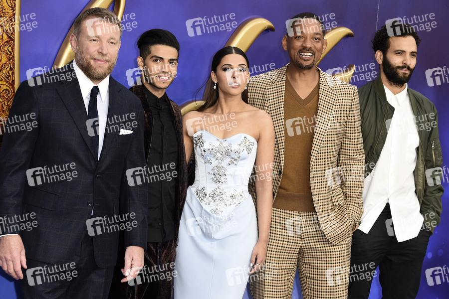 Guy Ritchie, Mena Massoud, Naomi Scott, Will Smith und Marwan Kenzari bei der Europapremiere des Kinofilms 'Aladdin' im Odeon Luxe. London, 09.05.2019