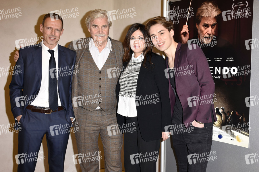 Michael Zechbauer, Peter Simonischek, Alice Brauner und Ben Zechbauer beim Abschluss der 11. Jüdischen Filmtage mit der Vorführung des Kinofilms 'Crescendo #Makemusicnotwar' im Jüdischen Gemeindezentrum. München, 15.02.2020