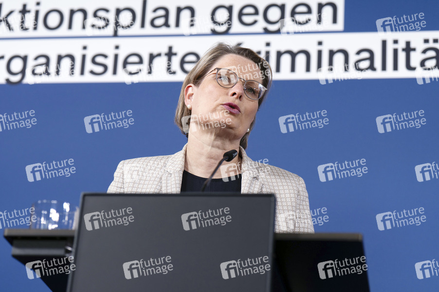 Stefanie Hubig bei der Pressekonferenz zur Vorstellung des Aktionsplans gegen Organisierte Kriminalität im Zollfahndungsamt Berlin-Brandenburg. Berlin, 25.02.2026