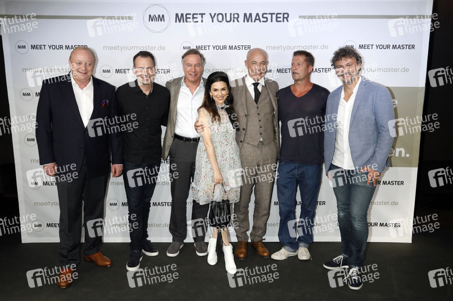 Alfons Schuhbeck, Sebastian Fitzek, Nico Hofmann, Viktoria Lauterbach, Heiner Lauterbach, Til Schweiger und Jonas Kaufmann beim Photocall zum 'Meet Your Master' Launch-Event im Hotel Bayerischer Hof. München, 21.10.2019