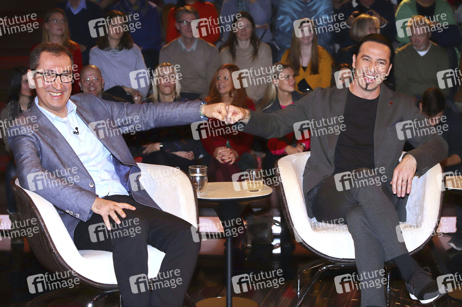 Cem Özdemir und Bülent Ceylan bei der Aufzeichnung der ZDF-Talkshow 'Markus Lanz' im Fernsehmacher Studio auf dem Phoenixhof. Hamburg, 10.12.2019