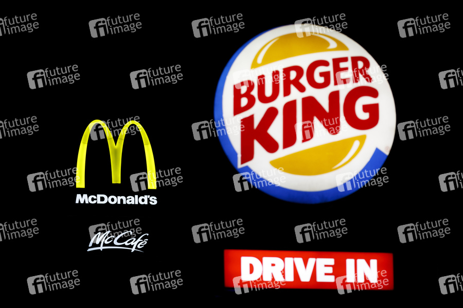 McDonald's, McDonald, McDonalds, Mc Donalds, Burger, Fast Food, Fastfood, Restaurant, DriveIn, Drive In, Drive-in, Drive-thru, Schnellrestaurant, Ernährung, Fritten, Softdrinks, Cola, Menü, Sparmenü, Whopper, BigMäc, Big Mäc, Cheeseburger, Hamburger, Ketchup, Majo, McCafe, Schnellrestaurantkette, Systemgastronomie, Franchising, Konkurrenz, Konkurrent, Marktführer, Filiale, Logo, Bildmarke, Wortmarke, Markenrecht, Mahlzeit, Kalorien, Fett, gesunde Ernährung, Ernährungspyramide, Fast-Food-Kette, Leuchtreklame, Reklame, Symbolbild, Symbolfoto