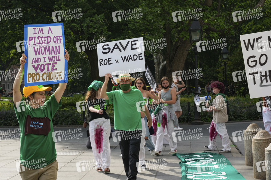 Demonstration für Abtreibungsrechte im Washington Square Park. Mehrere US-Organisationen, die das Recht auf Abtreibung unterstützen, riefen am 14. Mai zu landesweiten Protesten auf, nachdem ein durchgesickerter Gutachtenentwurf zeigte, dass der Oberste Gerichtshof der USA plane, seine wegweisende Grundsatzentscheidung zum Abtreibungsrecht Roe v. Wade aufzuheben. New York, 03.06.2022