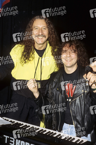 Mick Box und Phil Lanzon von Uriah Heep beim Soundcheck vor dem Konzert im Astoria Theatre. London, 15.03.1991