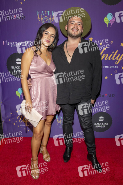 Josh Albillo mit Begleitung bei der Musikvideo-Premiere 'Home of the Brave' von Poo Bear, Shndo & Loureen Ayyoub bei Black Star Burger. Los Angeles, 24.06.2021