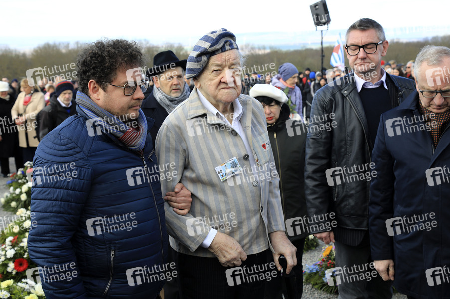 Alojzy Maciak aus Warschau, Überlebender des KZ Buchenwald, bei der Kranzniederlegung zum 80. Jahrestag der Befreiung des Konzentrationslagers Buchenwald und Mittelbau-Dora. Weimar, 06.04.2025