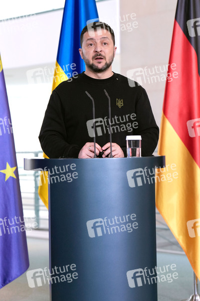 Politik, Staatsbesuch, Staatsvisite, Gespräch, bilaterale Gespräche, Treffen, Diplomatie, Staatsgast Kanzleramt, Ehrenhof, Pressekonferenz, Pressestatement, Unterstützung, Krieg, Politiker, Präsident der Ukraine, Volodymyr Zelenskyy, Volodymyr Oleksandrovyč Zelensʹkyj