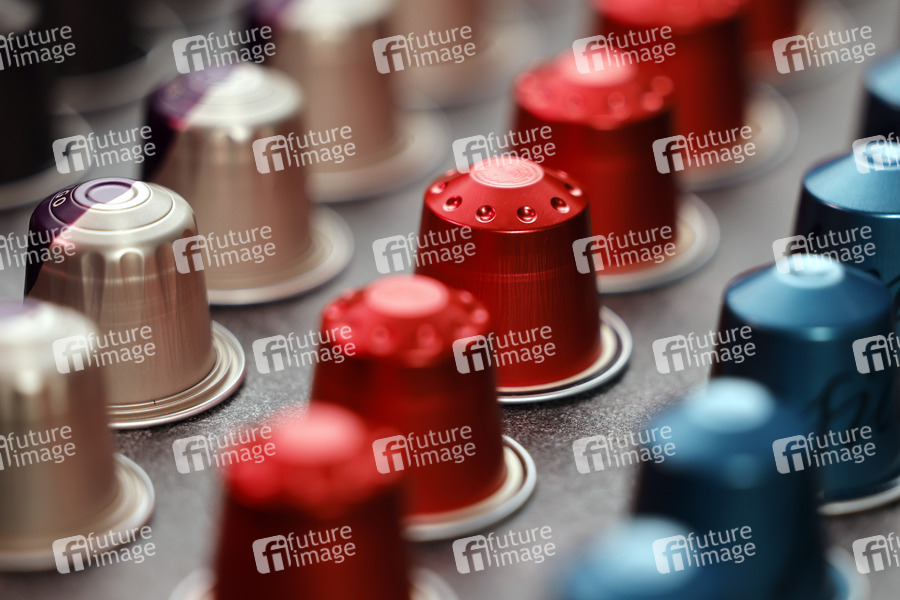 Kaffeekapseln verschiedener Hersteller auf einem Tisch. Die Organisation Foodwatch kritisiert Kaffeekapseln immer wieder als 'riesige Ressourcenverschwendung'. Zuletzt ließ man die Werbelüge eines Herstellers abmahnen, dessen Kaffeekapseln seien kompostierbar. (Themenbild, Symbolbild) 25.01.2022