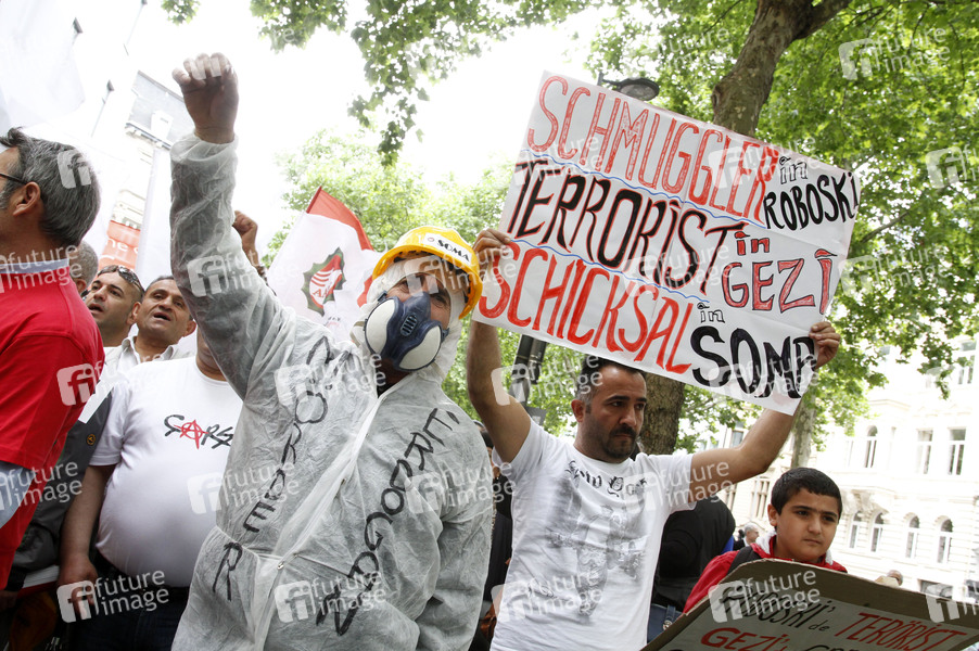 Zehntausende Gegendemonstranten haben sich auf dem Kölner Ebertplatz versammelt, um gegen den Auftritt des türkischen Ministerpräsidenten Recep Tayyip Erdogan zu protestieren. Köln, 24.05.2014