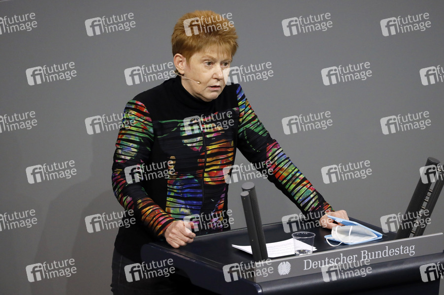 Petra Pau in der 204. Sitzung des Deutschen Bundestages im Reichstagsgebäude. Berlin, 14.01.2021