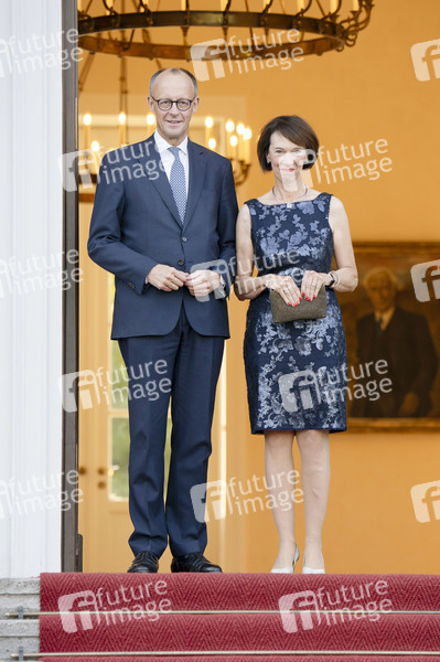 Friedrich Merz mit Ehefrau Charlotte Merz beim festlichen Abendessen zur Würdigung des 60-jährigen Jubiläums der Aufnahme diplomatischer Beziehungen zwischen der Bundesrepublik Deutschland und Israel am 12. Mai 1965 im Schloss Bellevue. Berlin, 12.05.2025