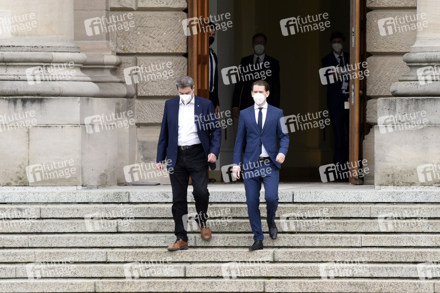 Markus Söder und Sebastian Kurz bei einem persönlichen Austausch des bayerischen Ministerpräsidenten mit dem österreichischen Bundeskanzler in der Staatskanzlei. München, 11.05.2021
