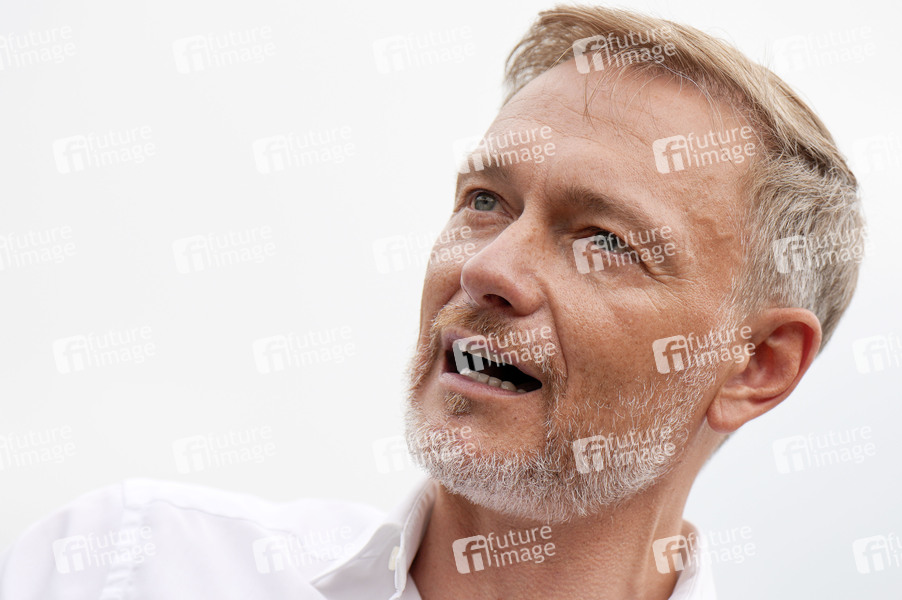 Christian Lindner bei einer Wahlkampfveranstaltung der FDP zur Landtagswahl in Brandenburg im Mahlower Seebad. Blankenfelde-Mahlow, 15.08.2024