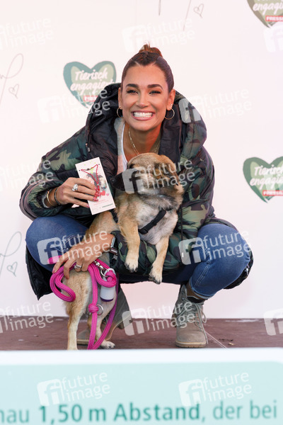 Jana Ina Zarrella mit Hund Cici beim Pressetermin zur Charity-Initinative 'Tierisch engagiert' unterstützt von Fressnapf im Tierheim Köln-Zollstock. Für die Aktion 'Freundschaft verbindet' hat sie ein Freundschaftsarmband designt, dessen Erlöse direkt an den Tierschutz und in tiertherapeutische Einrichtungen fließt. Köln, 29.09.2020