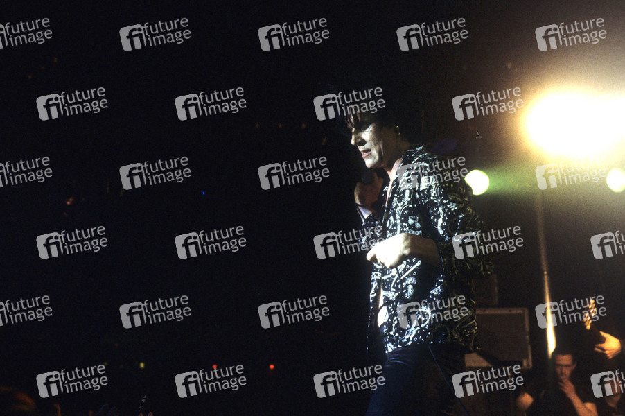 Lux Interior von The Cramps live in der Brixton Academy. London, 10.04.1984