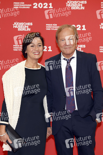Sandra Maischberger mit Ehemann Jan Kerhart bei der Verleihung des 'Preises für Verständigung und Toleranz' im Glashof des Jüdischen Museums. Berlin, 13.11.2021
