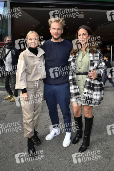 Janin Ullmann, Frederic Heidorn und Melissa Khalaj bei der Wiedereröffnung des neuen Globetrotter in der Schloßstraße. Berlin, 01.10.2020