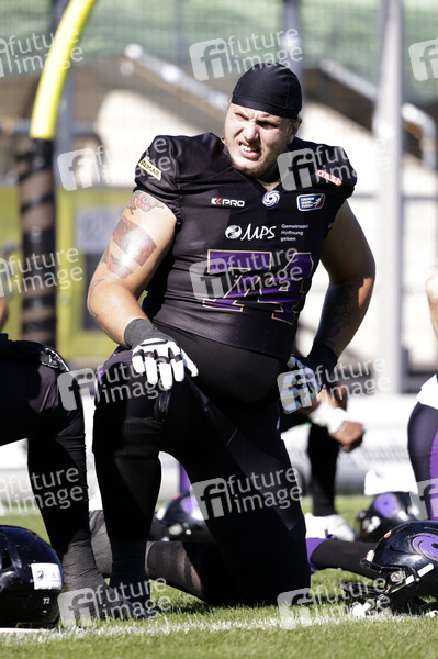 Steven Nielsen (74) beim American Football-Spiel Frankfurt Galaxy gegen Madrid Bravos in der PSD Bank Arena Frankfurt. Frankfurt am Main, 10.08.2024